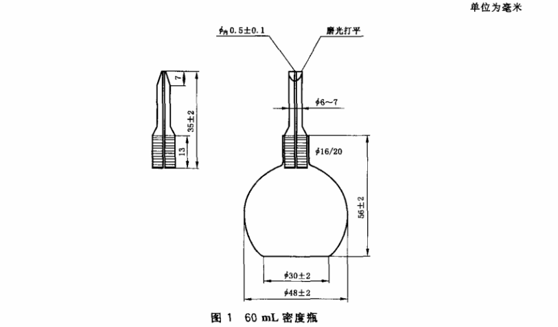 3  密度瓶:帶磨口毛細管塞,容量為60ml,見圖1