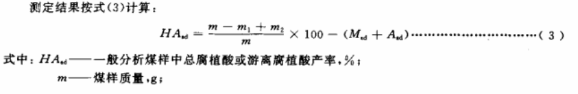 用焦磷酸鈉堿液和氫氧化鈉溶液從煤樣中抽取提腐植酸,從煤樣中的有機質減去抽提后不溶物(殘渣)中的有機質,求得總腐植酸或游離腐植酸產率。