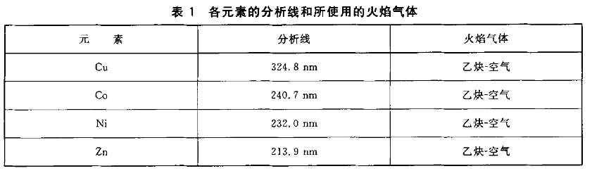 12 銅、鈷、鎳、鋅混合標(biāo)準(zhǔn)工作溶液:各20µg/mL。