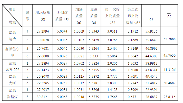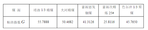 數據顯示富源靖臺、富源色爾沖、大河精煤的粘結指數在重復性限范圍內,富源恩發、富源次精煤不在重復范圍內,但誤差不是