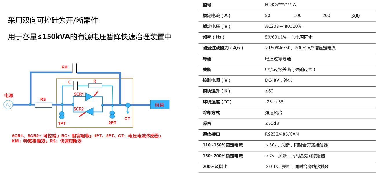 當(dāng)電網(wǎng)電壓發(fā)生暫降時(shí),可在2ms內(nèi)將敏感負(fù)荷切換至本裝置供電10s或更長(zhǎng)時(shí)間,確保敏感負(fù)荷不間斷供電。